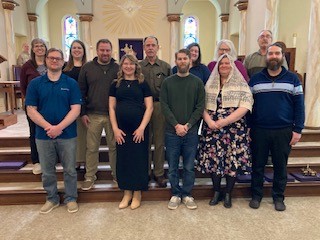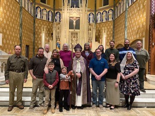 Our parish catechumens and candidates were sent to our diocesan cathedral on Sunday, February 22, to meet Bishop Tylka and to be accepted for Baptism, Profession of Faith in the Catholic Church, and Confirmation at the Easter Vigil. They are pictured here with their godparents and sponsors. The picture was taken this Sunday after the Rite of Sending at Holy Family’s 10 a.m. Mass.